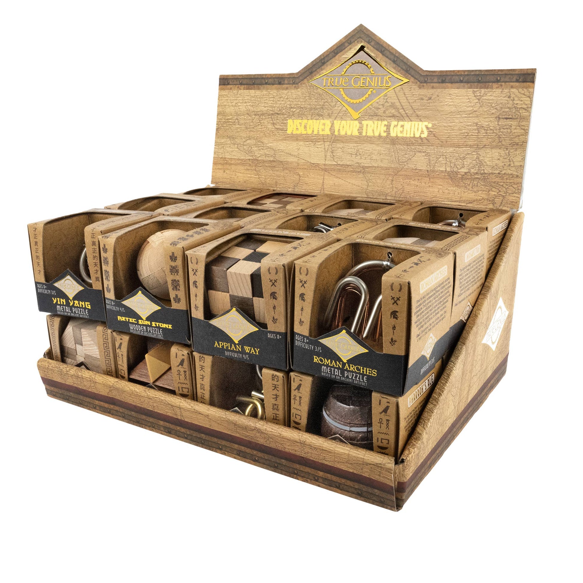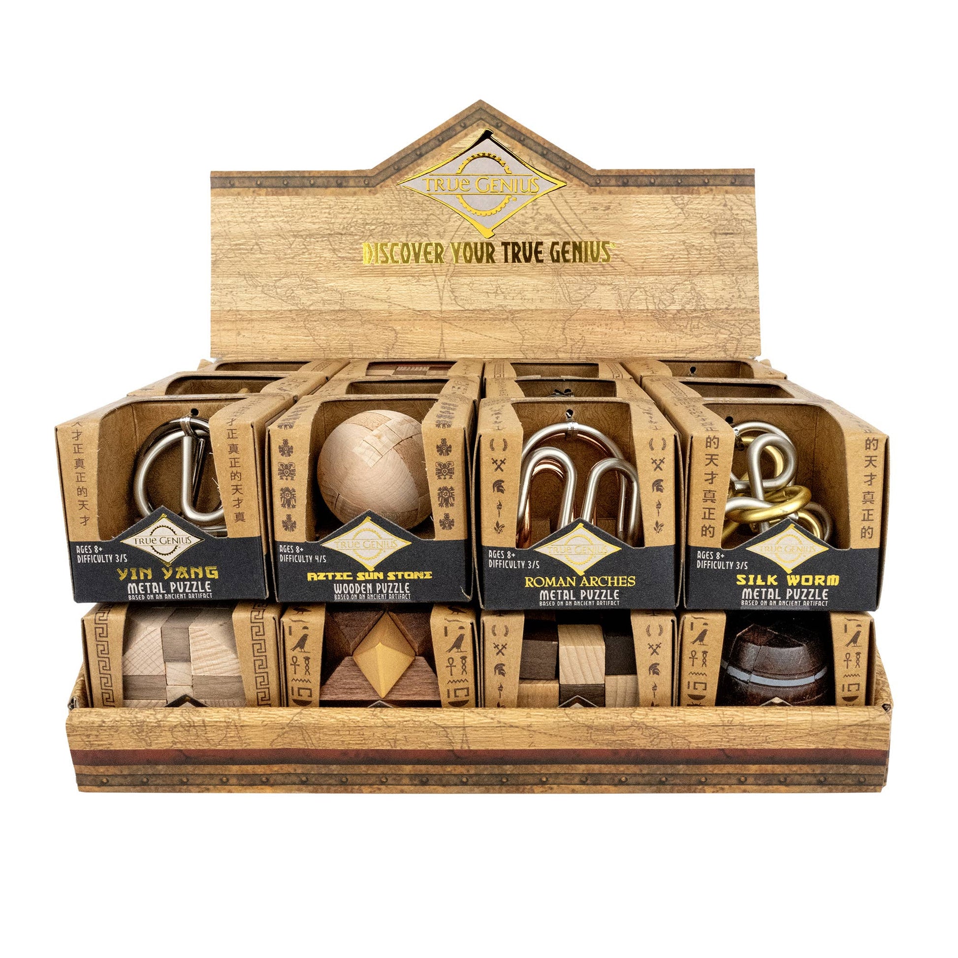 Assortment of wooden and metal impulse brainteasers, each crafted to delight with difficulty levels ranging from easy to very hard. Ideal as Christmas gifts and stocking stuffers, these compact puzzles appeal to bookish consumers who like smart gifts.