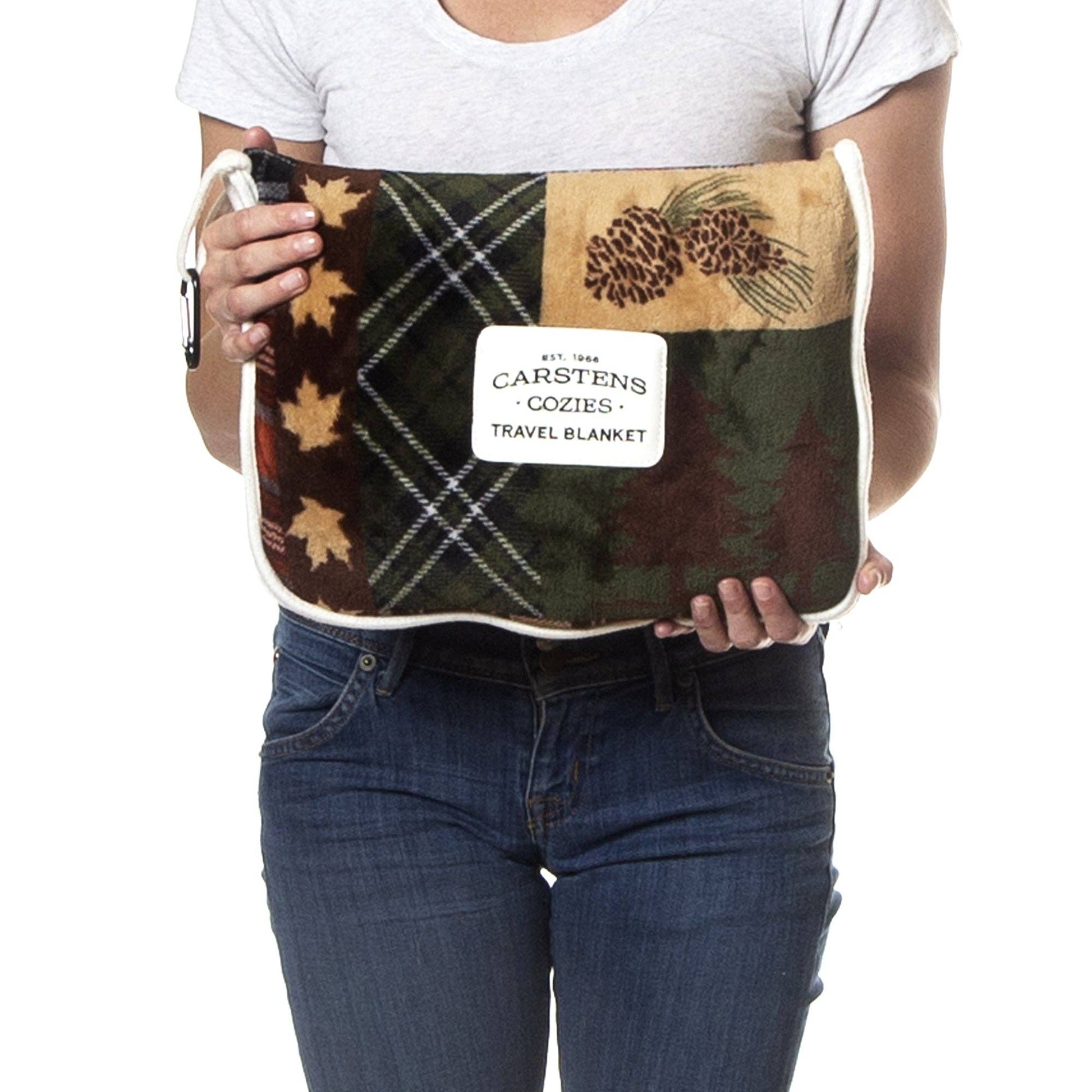 For comfortable travel, no matter how long or short your journey may be, take Carstens plush with you! These blankets pack neatly into a small travel sack that has a suitcase handle strap and a fabric loop with a carabiner for easy hands free carrying.
